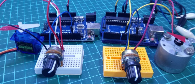 Bu çalışmamızda daha önce gördüğümüz Arduino’nun analog girişlerinin bir potansiyometre kullanılarak pwm çıkışlarına bağlanan DC ve Servo motorların nasıl kontrol edilebileceğini inceliyoruz.