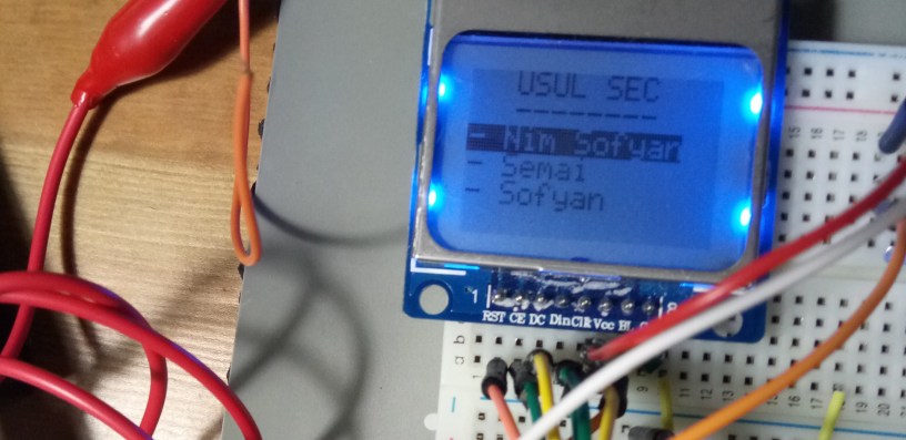 Zaten daha fazlası Arduino’nun program belleği için zorlayıcı oluyor. Sadece yukarıdakilerle dahi pro mini 168’in 16 kByte’lık hafızasını aştı ve Atmega 328 kullanmak zorunda kaldım. Kodun uzun olmasının nedeni zorluğundan değil, tekrar eden bölümlerinin çok olmasından kaynaklanma. (Aslında her seferinde “düm” ve “tek”ler loop olarak yazılıp usûller içinde çağırılabilirdi!)Ayrıca bu projede rotary encoder ve Nokia 5110 LCD ekran kullanıldı. Menü oluşturmak da yine tekrar eden komutlardan dolayı epeyce yer işgal etti.